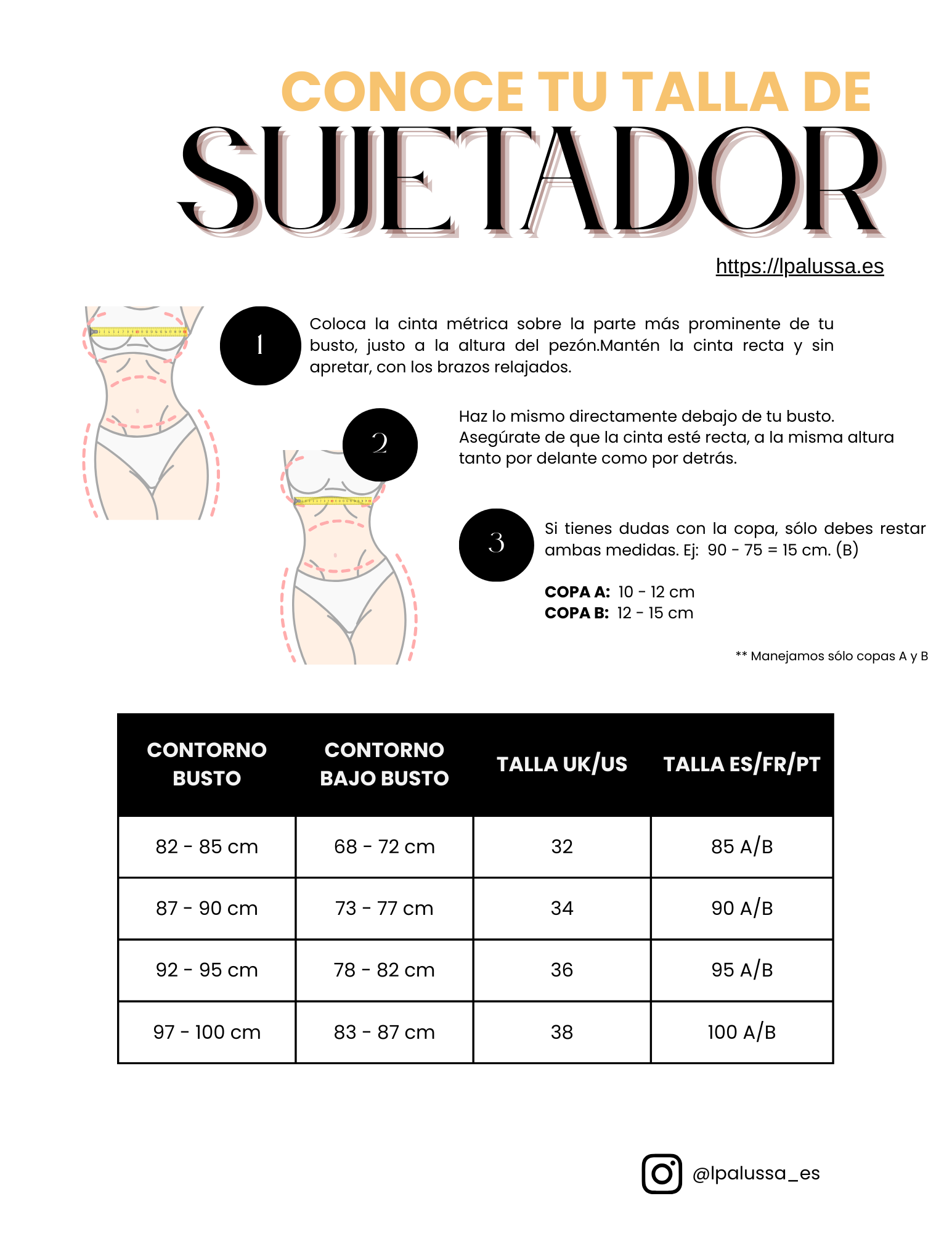 Queremos que tu proceso de elegir tus prendas favoritas sea lo más sencillo posible. Por eso, te dejamos esta tabla con medidas para que desde casa, puedas tallarte tu misma.